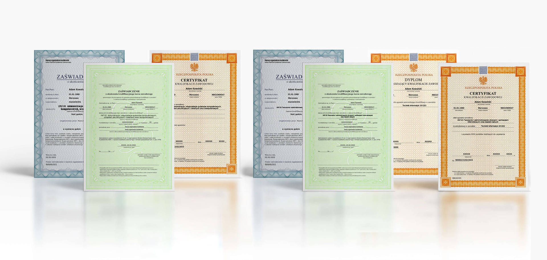 Po zdanym egzaminie zawodowym dodatkowo uzyskuje się Certyfikat potwierdzający kwalifikacje w zawodzie.